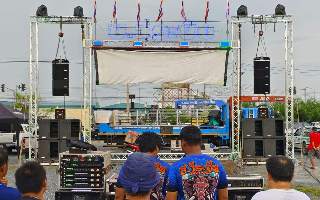 นอกจากระบบภาพแล้ว ระบบเสียงก็มีความสำคัญไม่แพ้กัน ชุดลำโพง Line Array คุณภาพสูงถูกนำมาติดตั้งเพื่อให้เสียงที่กระหึ่ม ครอบคลุมพื้นที่จัดงานอย่างทั่วถึง ไม่ว่าผู้ชมจะนั่งอยู่มุมไหนของลานกิจกรรม ก็สามารถรับฟังบทสนทนาและดนตรีประกอบได้อย่างชัดเจนเสมือนยกโรงภาพยนตร์มาตรฐานมาไว้กลางแจ้ง
