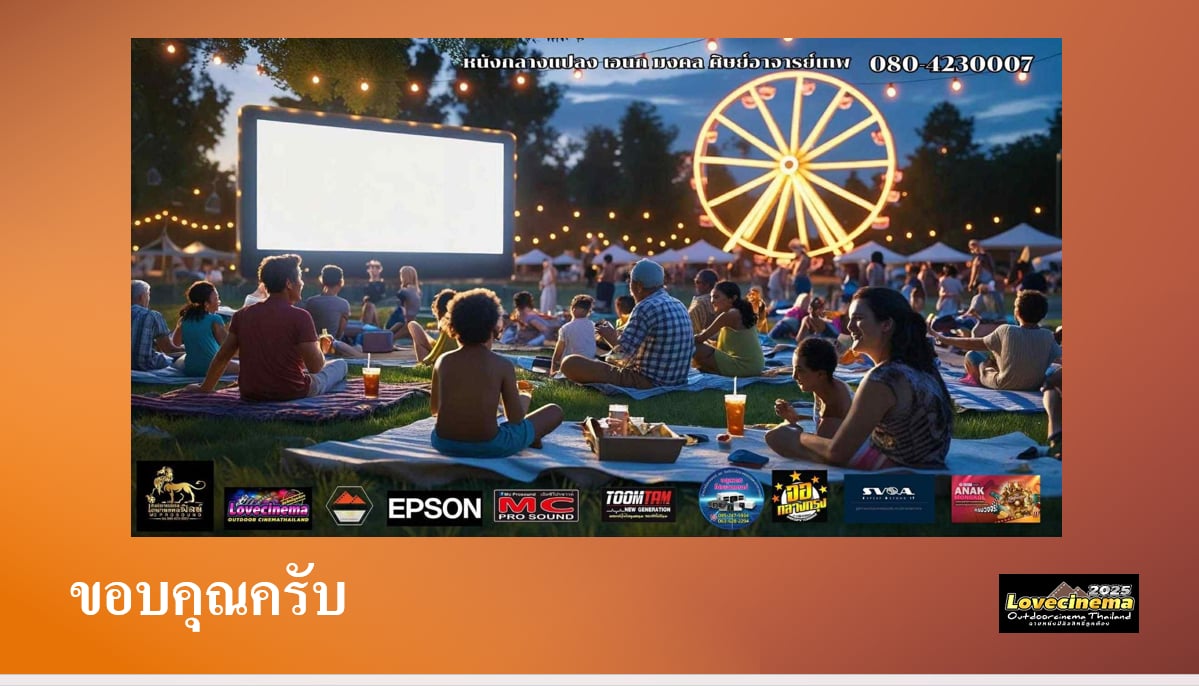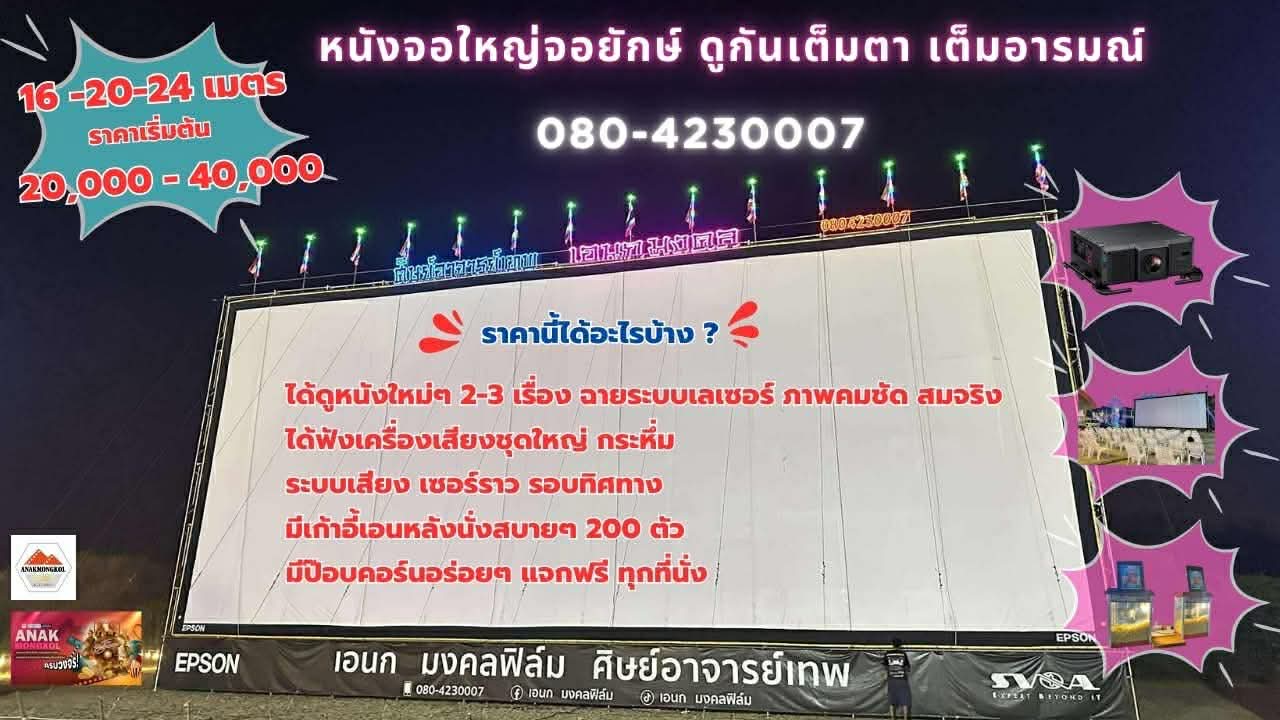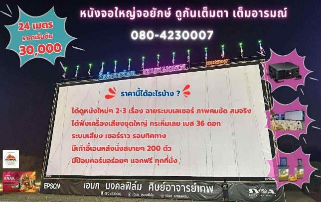 บริการฉายหนังกลางแปลง ติดต่อพี่เอนก 080-423-0007 มีทีมงานมืออาชีพ พร้อมอุปกรณ์กลางแปลงครบชุด จัดเต็มทุกความบันเทิง